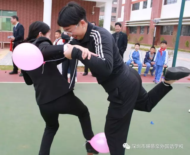 值此佳节,深圳市珊蒂泉外国语学校开展了以“阳春三月天,靓丽女神节”为主题的迎“三八”趣味运动会,女教职工同聚一堂,举校同庆。趣味运动会设有“踩你没商量”、“掂乒乓球”、“做动作,猜词语”等项目,活动中的女教职工们英姿飒爽,春风满面。活动现场战况激烈,笑声不断,学生也纷纷围观,生动热烈。活动结束后,女教职工们手中拿着奖品,脸上洋溢着微笑,收获着“三八”的幸福和快乐。