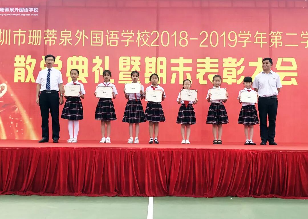 辛勤汗水,换来丰硕成果。时光如梭,转眼间一个学期过去了。这一个学期,在全体师生的共同努力下,深圳市珊蒂泉外国语学校各个方面都取得了可喜的成绩。总结过去是为了更好的前进,笃行致远,砥砺前行。为了更好地总结一学期以来取得的成绩,及时表彰在各方面表现出色的优秀学子,激发同学们积极上进的学习意识,珊蒂泉外国语学校举行2018—2019学年第二学期散学典礼暨期末表彰大会。