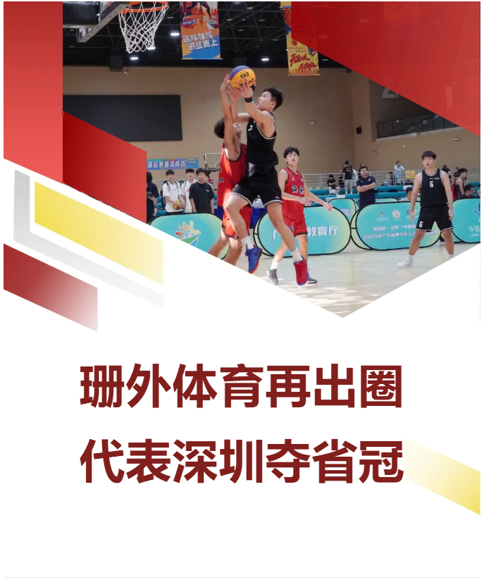 继我校男篮代表珊蒂泉校队蝉联2023、2024年该赛事冠军后,首次代表深圳队斩获桂冠,“三冠王”再现珊外“篮”不住的精彩,为龙岗篮球、深圳篮球增光添彩。
