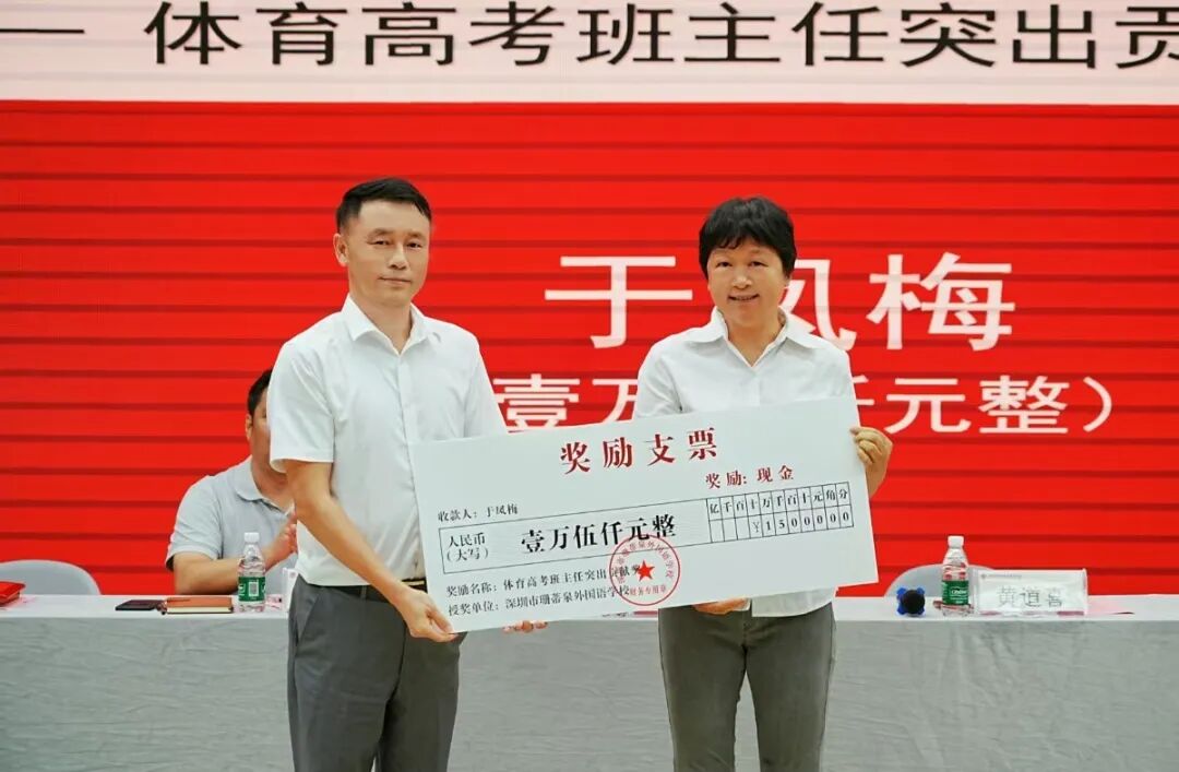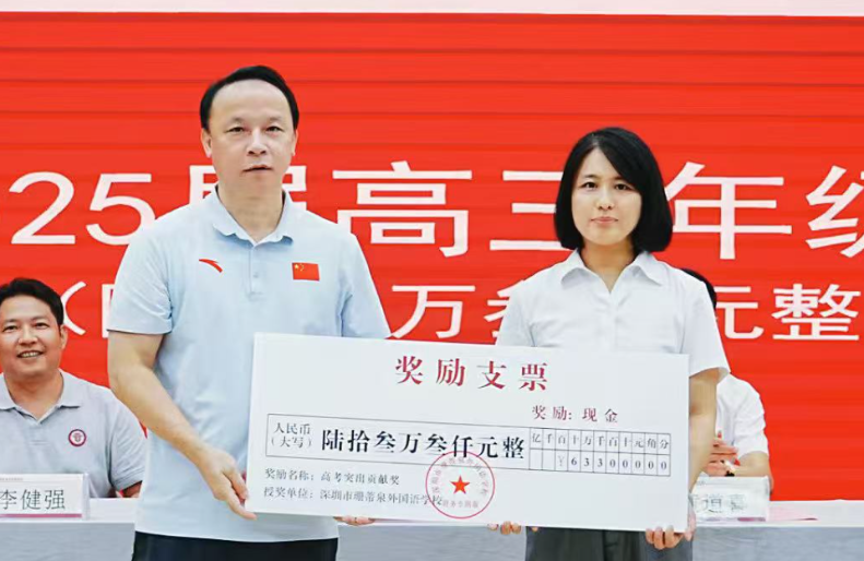 回眸过去的一学年,珊蒂泉的校园里,处处涌动着奋斗的激情,时时闪耀着奉献的光芒。正是这无数的微光,汇聚成珊蒂泉蓬勃发展的璀璨星河!今天,在这里,就是要让这些闪耀的星辉被看见、被铭记、被颂扬。杨庆平副校长宣读了《深圳市珊蒂泉外国语学校关于2024-2025学年度先进个人、先进集体表彰的决定》,本次表彰“优秀个人、优秀科组、教育教学突出贡献奖、中考突出贡献奖、高考突出贡献奖、体育高考突出贡献奖”共六大类,奖金达100万元。